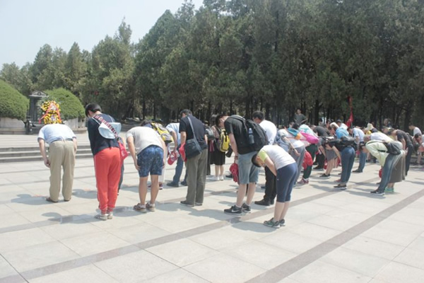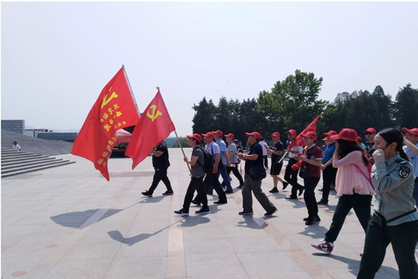最后,全体党员重走击毙张灵甫之地,登上孟良崮主峰,满怀崇敬之心瞻仰孟良崮战役纪念碑。