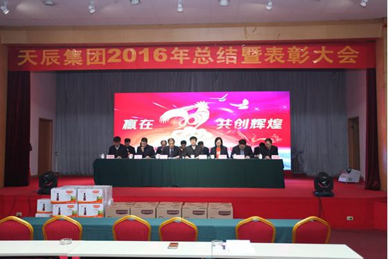 1月24日上午,天辰集团在装修一新的东郊饭店大礼堂召开2016年总结暨表彰大会。