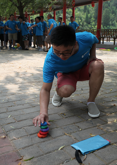 由于当日气温比较炎热,室外拓展进行了团队塔、爱的传递等运动量低但需要团队合作才能过关的项目。为了能完成教官布置的挑战,各小队都能紧密协作,合理分工,整个挑战过程中除了环环相扣的团队合作,也不乏个人智慧的闪现。