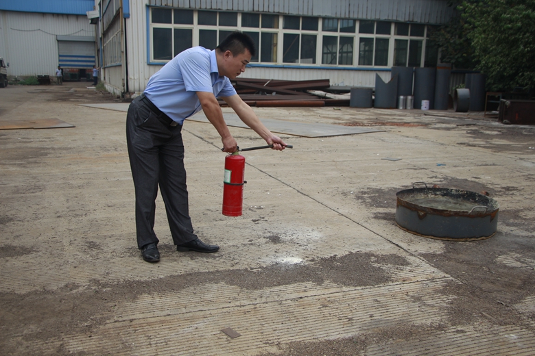 09月24日上午九点,所有参与演练人员在预定地点集合,总指挥亓总再次重申重视消防安全的重要性与必要性,由王元军主任为员工进行了消防安全知识培训,并讲解手提式灭火器的正确使用方法。