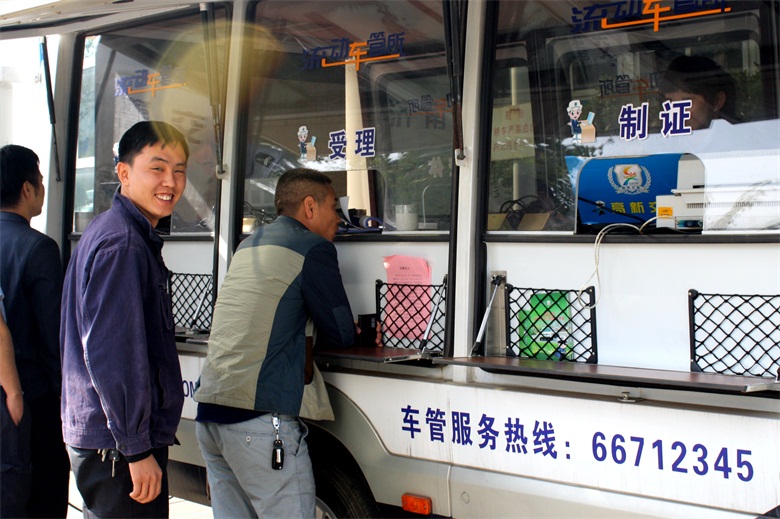 10月15日上午9点30分,服务车开进济南天辰铝机股份有限公司,现场为企业员工办理驾驶证、行驶证和机动车年检业务。据统计,“流动车管所”共为企业150余名员工办理了驾驶证年检业务,发放宣传材料、解答咨询100余次。