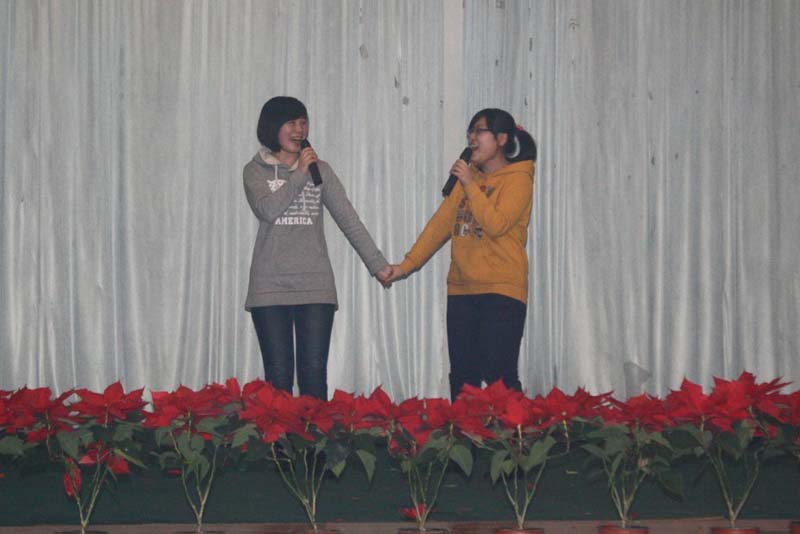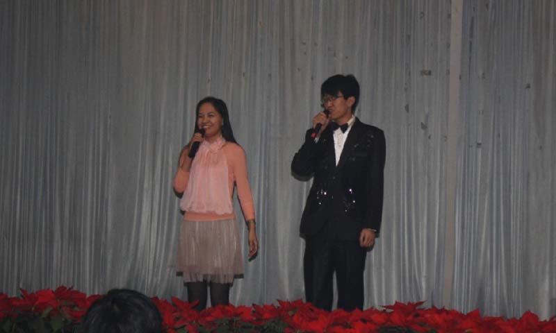 本次联欢会由来自铝机公司销售部的闫娟和数控公司杨晓坤搭档主持人,在热情激昂的小合唱《我相信》中拉开帷幕,舞蹈、独唱、相声、三句半等内容丰富,形式多样,各具特色的原创节目一一亮相。