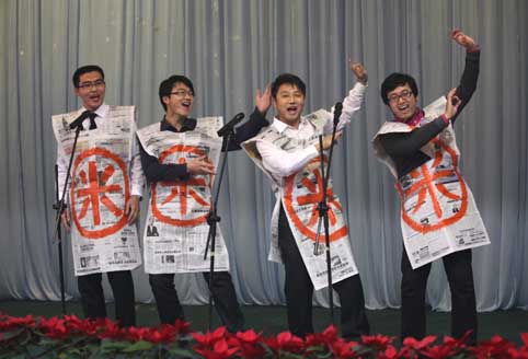 此次联欢会由青春靓丽的新人担任主持,联欢会在铝机公司赵美东的《欢乐中国年》中帷幕,车库公司何琦深情款款的男声独唱《没离开过》听得大家意犹未尽;刘文婵和王佳自编自演的相声《普通话》妙趣横生,引得台下爆笑不断;男声小合唱《换大米进行曲》诙谐幽默的表演赢得大家阵阵掌声;由领导参与《猜成语》的互动游戏把现场的气氛推向了高潮;时尚动感的街舞、情感真挚的自弹自唱《老男孩》,以及超高难度的和声《威廉退尔序曲》等精彩节目接二连三目不暇接;压轴舞蹈《荷塘月色》以其精湛的表演取得了满场喝彩。
