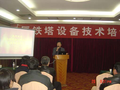 2009年12月19日到26日,“天辰铁塔设备技术培训班” 先后在河北广川和山东胶州等地开讲,天辰集团技术专家通过与客户面对面的交流,把大至铁塔行业的形势和动态、小至铁塔产品的操作方法和注意事项倾囊相授,共计83个厂家的171人参加
