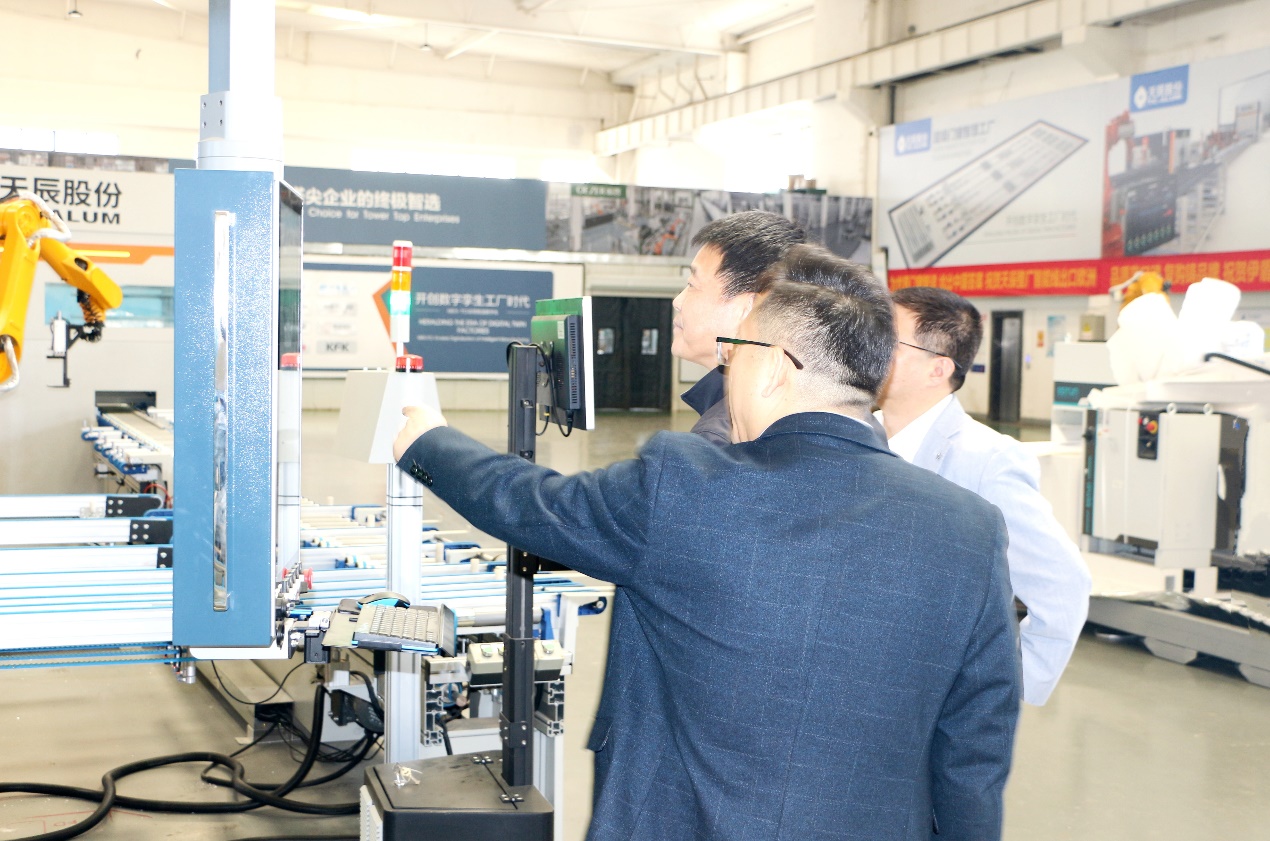 在总经理周倩、副总经理傅旺的陪同下,胡秘书长参观了天辰数字化生产车间,近距离了解门窗智能产线、一站式数字工厂解决方案,并听取了天辰在技术创新、全球产能布局及地标项目建设方面的最新进展。